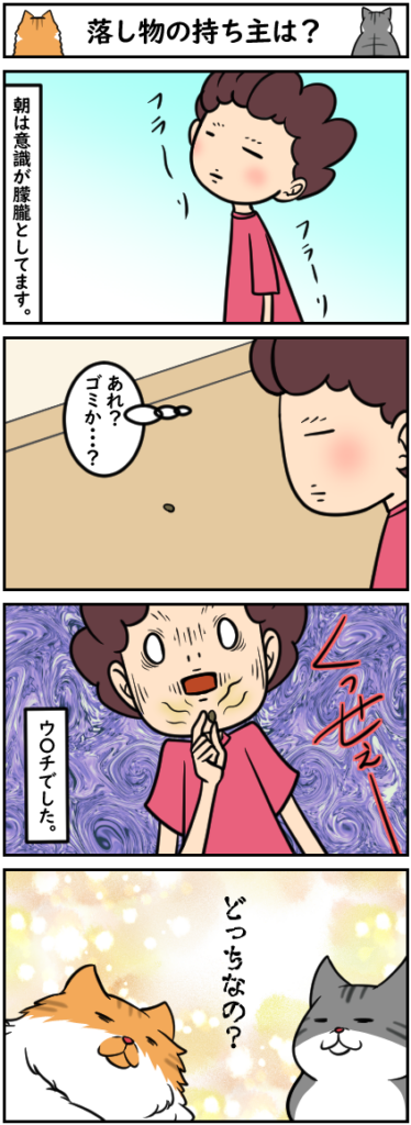 2023年漫画ブログ 46話から60話 2026 1/30 2023年 日常 猫 2026年1月30日 ウンチトラブルはあるある 私くらいになると素手で触れるし くっせぇほどの愛!!!! 2023年 日常 猫 おもちゃの好み オヤツ ゼロ距離 ハチ ハンモック ホラー映画 夫婦 孫悟空 尻尾 月が出た 毛繕い 猫 猫のウンチ 虫 よかったらシェアしてね! URLをコピーしました! URLをコピーしました! 2023年漫画ブログ 31話から45話 2023年漫画ブログ 61話から75話 この記事を書いた人 テル子武 在宅ワーク中の主婦です。 長年勤めた会社は、出産をきっかけに卒業。 ちょっぴり惰性な性格の私ですが、猫たちに尻を叩かれて、なんとか人間として成長中です。 現在は、猫2匹+夫+息子のにぎやかな5人家族。 そんな毎日のドタバタを、漫画ブログでゆるっと紹介しています。 関連記事 2024年漫画ブログ 349話から363話 2026年2月21日 2024年漫画ブログ 334話から348話 2026年2月21日 2024年漫画ブログ 319話から333話 2026年2月21日 2024年漫画ブログ 304話から318話 2026年2月20日 2024年漫画ブログ 289話から303話 2026年2月14日 2024年漫画ブログ 274話から288話 2026年2月14日 2024年漫画ブログ 259話から273話 2026年2月14日 2024年漫画ブログ 244話から258話 2026年2月14日 コメント コメントする コメントをキャンセルコメント ※ 名前 ※ メール ※ サイト 次回のコメントで使用するためブラウザーに自分の名前、メールアドレス、サイトを保存する。 Δ